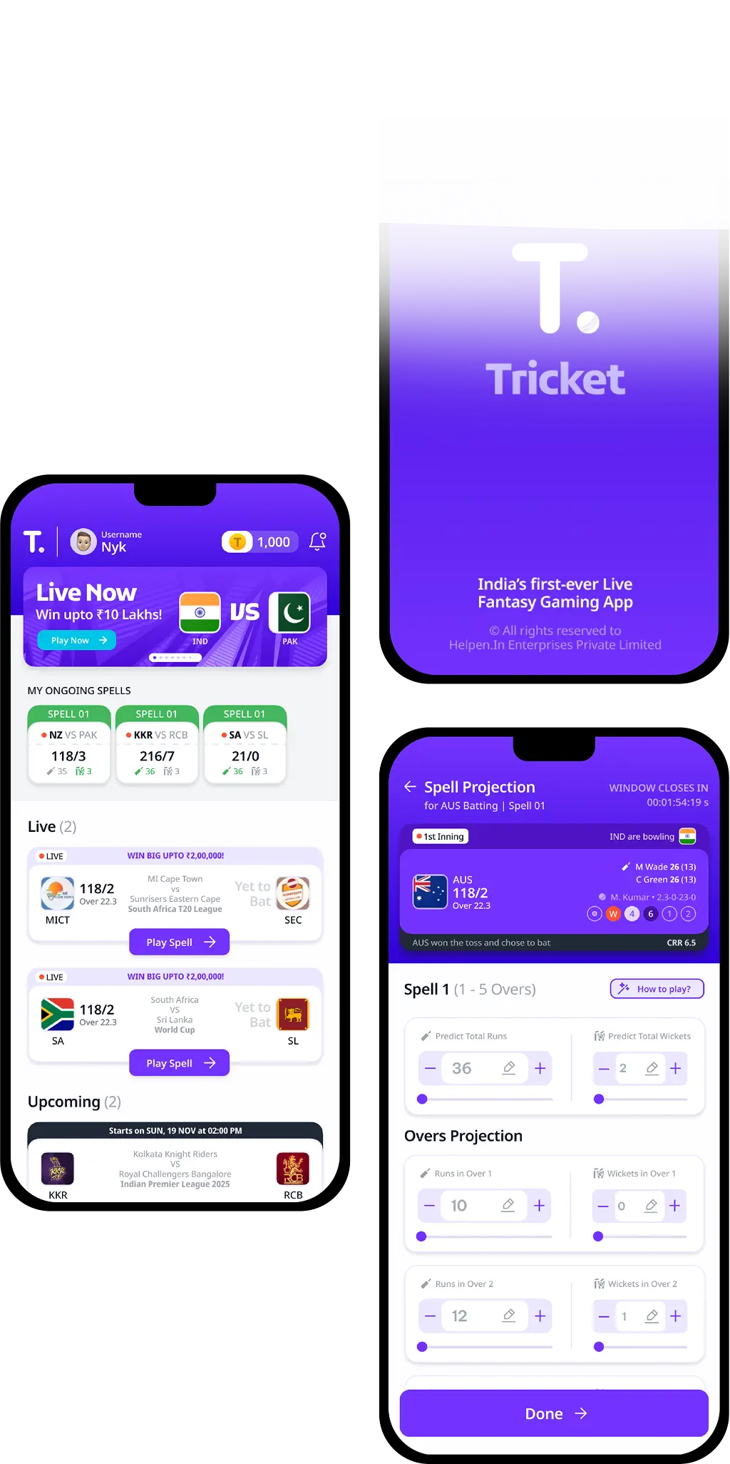 Tricket lets you experience cricket like never before — no team-building, no complications. Choose your favorite matches, make smart game-time decisions, and win real cash in real- time.